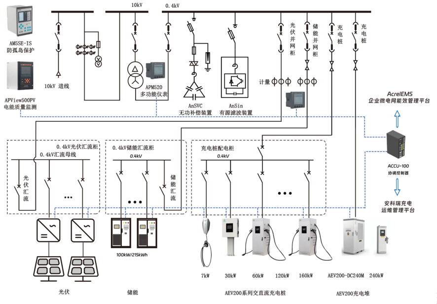 安科瑞微电网系统解决方案涵盖工商业分布式光伏发电系统、分布式储能系统、户用光储系统、充电桩运营管理系统等。