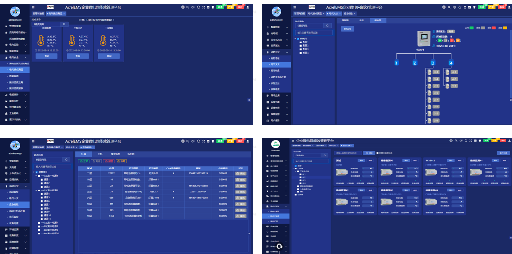 AcrelEMS能方便的接入电气火灾监控系统、消防设备电源监控系统、防火门监控系统、消防应急照明和疏散指示系统,各子系统按照国家标准建设,子系统调试记录、拓扑结构、运行记录、故障报警自动上传至平台,通过平台实现对涉及电气安全和消防的子系统进行集中监控、统一管理。
