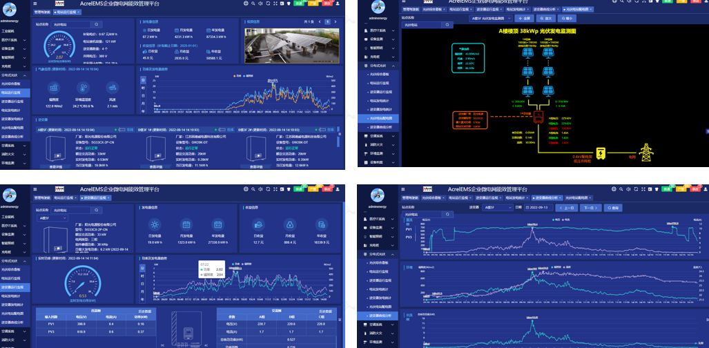 支持电站拓扑、光储充监控、环境监控、策略执行、收益结算、态势感知等。注:支持第三方平台与子系统的接入,如视频、充电桩、空调、相变储能、电能路由器等。