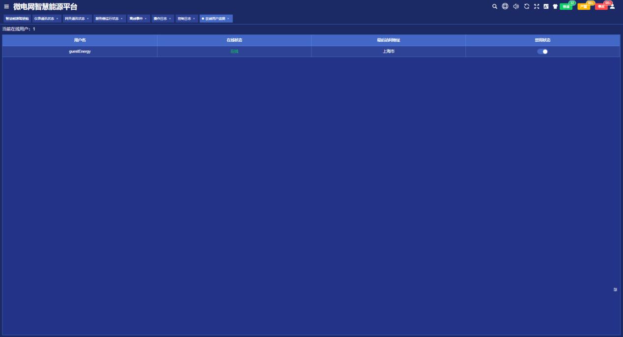 在线用户监测用于管控用户的登录状态,管理人员可实时查看平台当前在线用户数量并 进行强制登出控制。 能够实现对在线用户的强制登出。