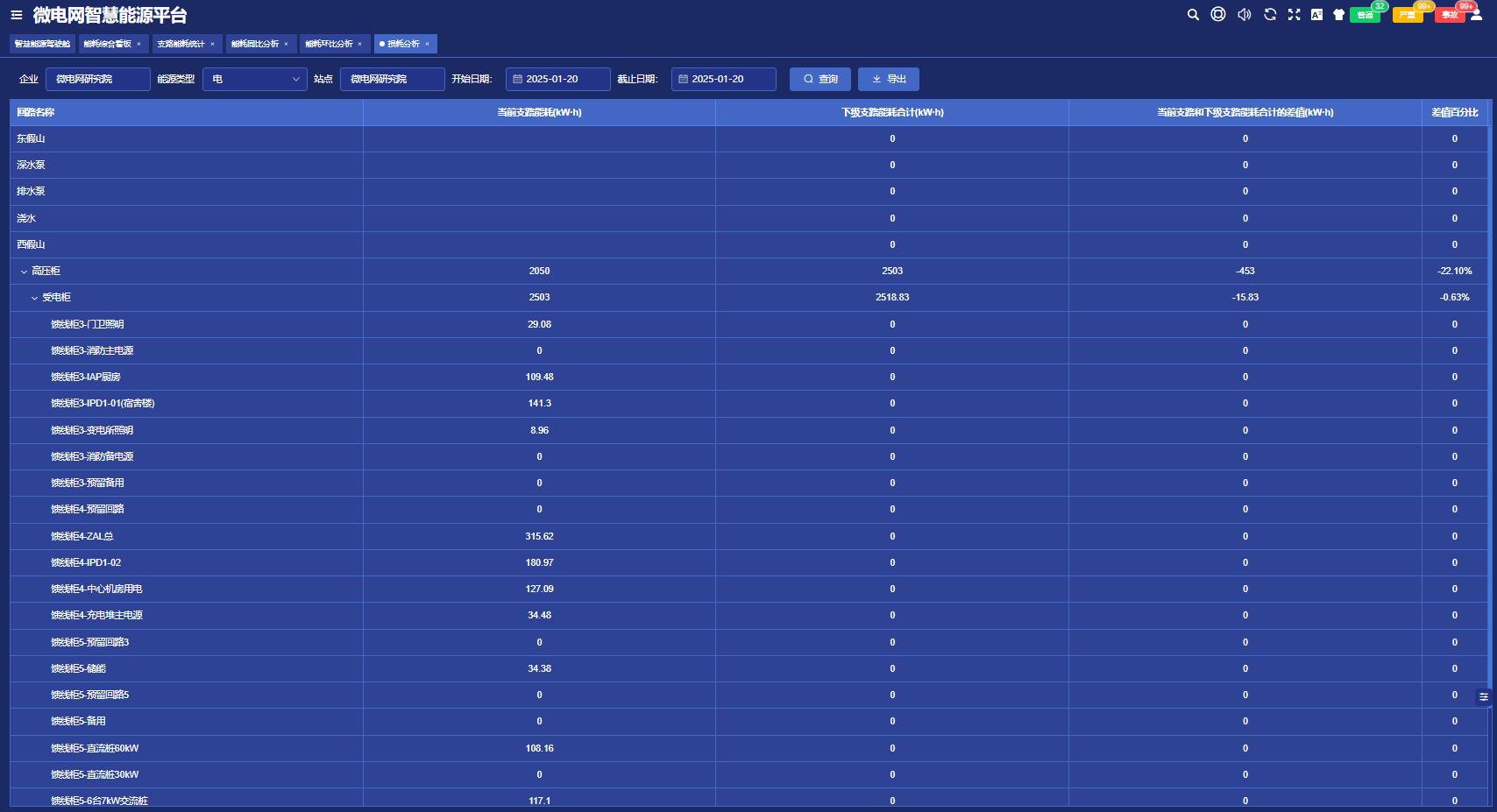 通过详细的上下级支路配置,分析上下级之间的用能损耗,提供精确地数据支持。