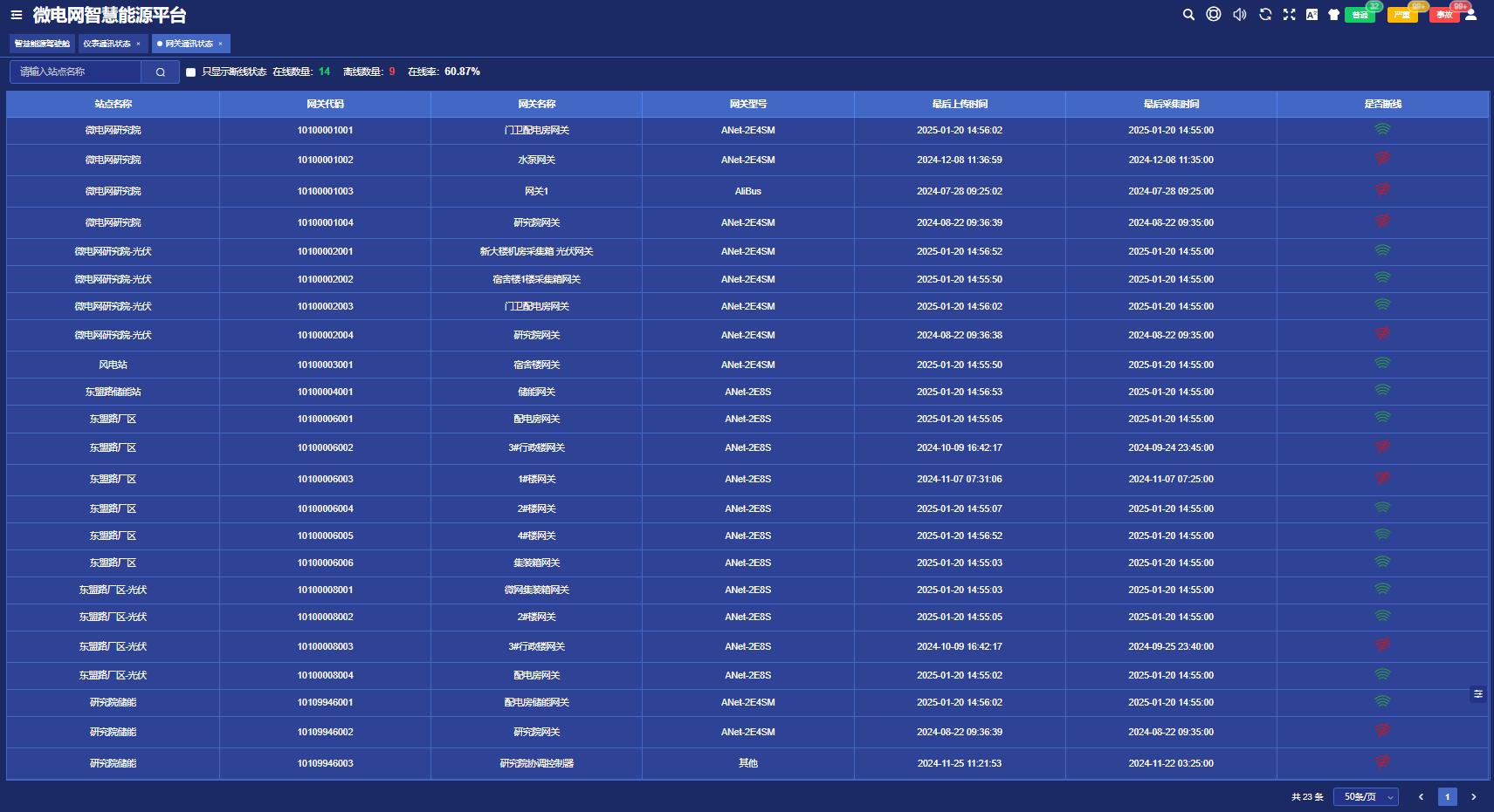 网关通讯状态主要用于监测目标站点的网关设备数据是否正常交互、是否有离线发生、 何时离线,为用户初步判断网关通问题提供依据。