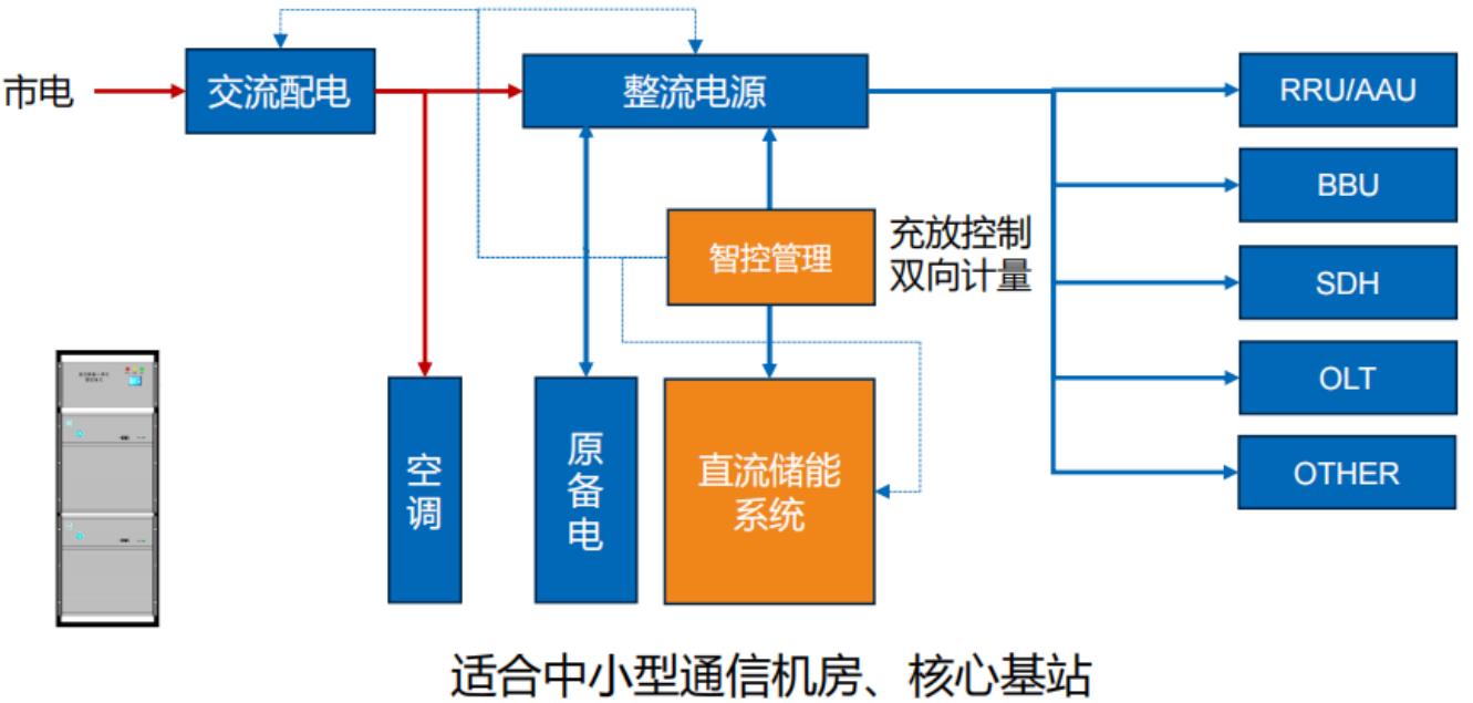 基站光储站点建设根据基站光储一体化方案,分为直流储能一体化、交流储备系统分离 式、交流储备一体化多种方案,其结构图如下所示: