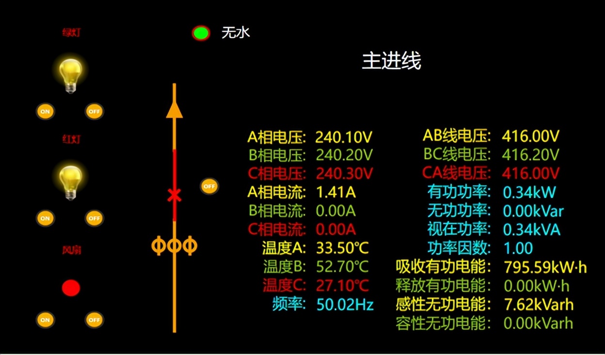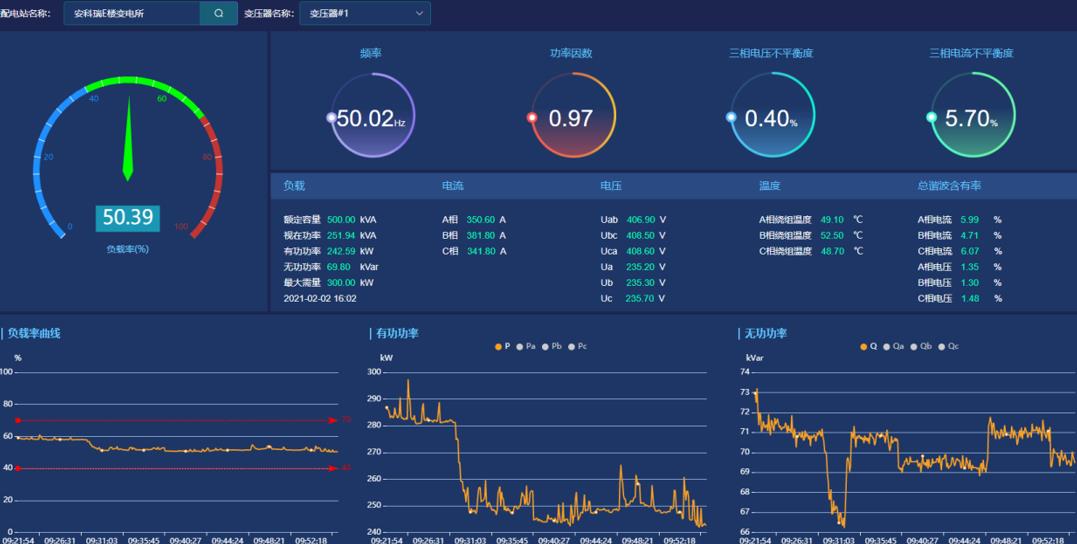 系统可实时监视各配电回路、主要供配电设备、重点用电设备、主要用电区域的各项用电参数。