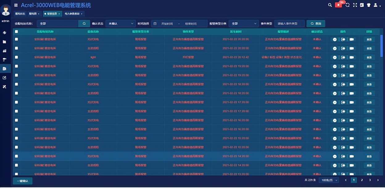 系统可实现过压、欠压、过流等各类遥测值的越限报警以及开关变位、水浸、烟雾等遥信变位报警,报警信息可进行分类分级显示。