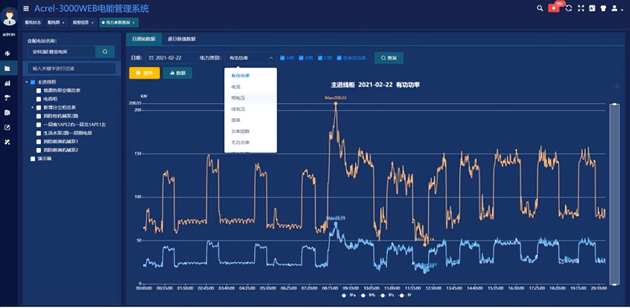 浏览次数:38Acrel-3000WEB电能管理系统是一个可组态纯浏览器访问的电力监测与管理的软件系统。该系统可采集配电柜、开关柜等保护装置和计量监测装置的各项数据,在平台界面上可显示任一回路的运行状态、瞬时值和历史值,让电可以被看见,有条理、有针对的进行管控用电,淘汰落后老旧设备,接入新能源发电,合理改善供电结构。统计各回路、各时段用电情况,对各电力参数曲线走势分析预测,自动生成日月年周期对比分析报告。