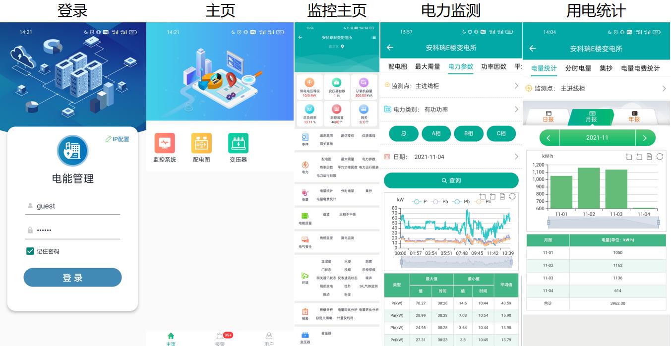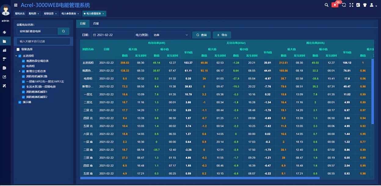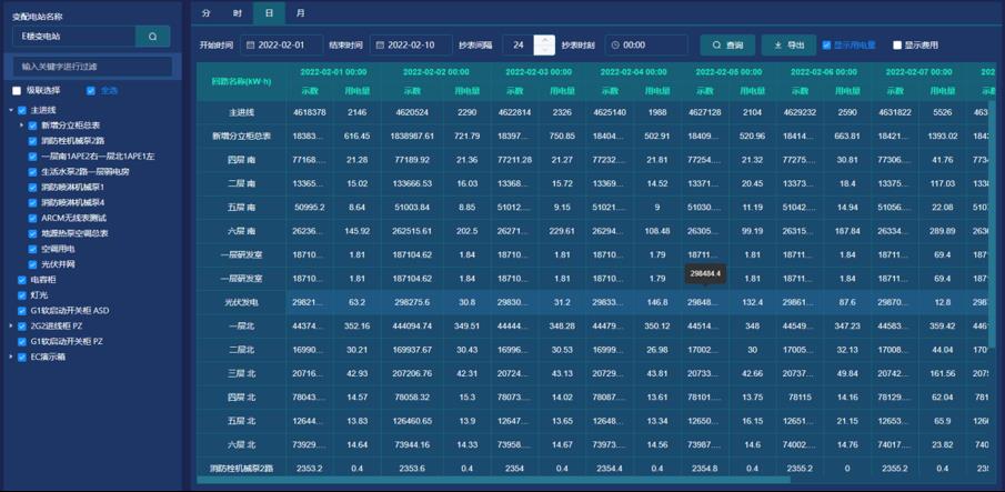 可对遥测数据进行极值统计,按日、月统计电压、电流、功率等各电参量的最大值、最小值、平均值及发生时间。统计各配电回路、配电区域、用电设备的日、月、年用电量,并进行同环比分析。可按照尖峰平谷统计电量及电费。
