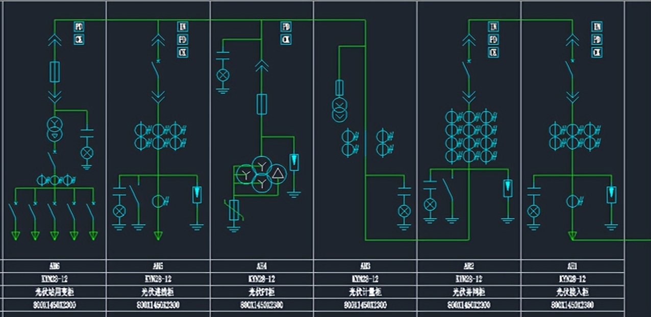 二次设计:计量方式是本光伏项目发电量采用“自发自用,余电上网”的方式,向系统上送功率。在光伏10kV并网柜内配置一套并网计量电能表,作为光伏发电量统计。
