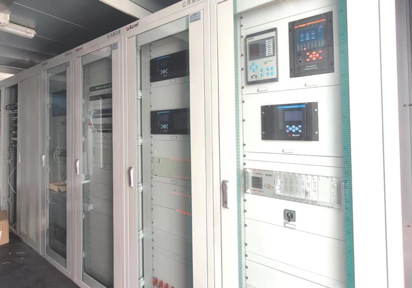 东区二次舱部署1面安全自动装置屏、1面公共测控屏与1面通信屏,西区二次舱内配置1面安全自动装置屏、1面公共测控屏、1面通信屏和1套Acrel-1000DP分布式光伏监控系统,实现微机保护装置、测控装置、直流屏、保护装置、电能质量监测装置以及其它智能设备的数据采集分散装置有:光纤差动保护*4台,电能质量监测装置*2台、线路保护装置*2台、PT监测装置*2台。