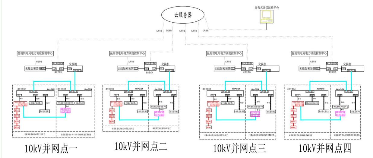微机保护部分:10kV光伏并网柜应配置方向电流速断、过流保护,防孤岛,故障解列装置;逆变器应配置防孤岛保护,输出过流保护,输入反接保护。