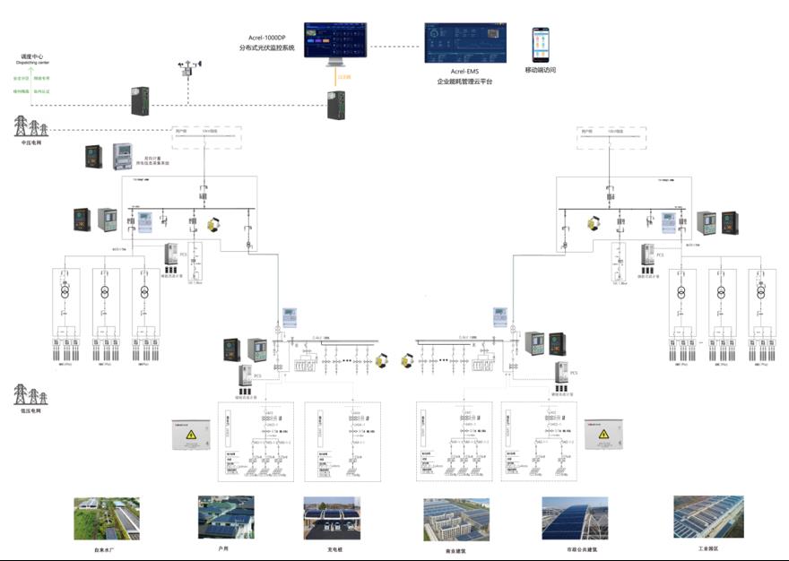 Acrel-1000DP 分布式光伏监控系统,整合数据采集、自动化管理等功能,涵盖防孤岛保护、逆变器监测、光功率预测等多元模块,适配低压 0.4kV 和高压 10kV 等并网方式。系统适用于厂矿企业、数据中心等多场景,已在浙江、江苏、海南等多地的工业、物流、养殖等行业落地多个项目。通过本地监控与云平台协同,实现光伏系统集中管控、高效运维,保障安全稳定运行,助力能源高效利用!