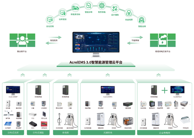 AcrelEMS3.0智慧能源管理平台是一种集成了现代信息技术(如物联网IoT、大数据、云计算和人工智能AI)的系统,用于监测、控制和优化能源使用以提高效率并减少浪费。以电力系统监控数据为基础,可分系统、多维度展示微网运行状态,优化能源消纳效率,提高微电网系统经济、安全能源管理与智慧运维水平。