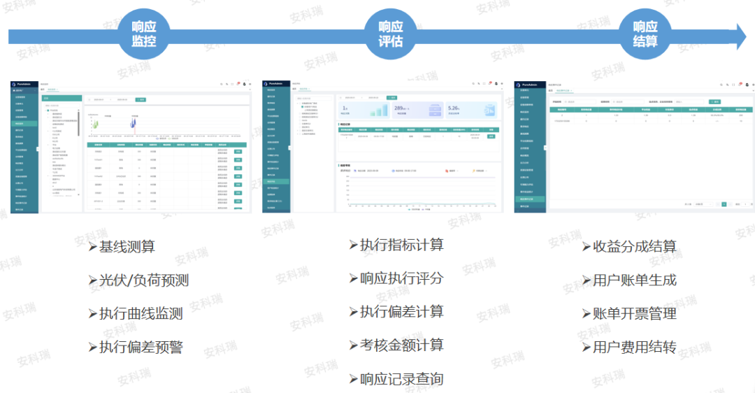 响应结果分析:量化调控前负荷基线、实际响应曲线及调控后的偏差率、考核金额等,给出评估指标评分及评价,为调控收益结算提供参考;