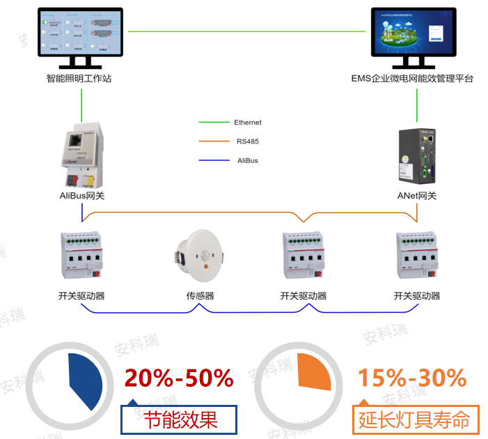 照明系统是潜力的可调节负荷资源。安科瑞智能照明控制系统通过开关驱动器、传感器等设备,将分散的照明负荷有效聚合为虚拟电厂的快速响应单元,实现快速的功率调节与精准的需求侧响应,为电网提供低成本、高效率的灵活性支撑。