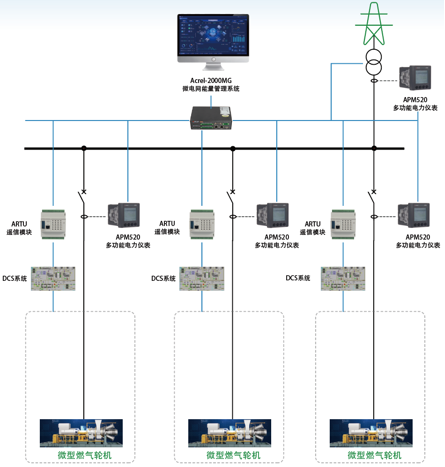 微型燃气轮机可控制强、出力可在大范围内灵活、平滑地调节,不受天气影响,是虚拟电厂优质的调峰和备用资源。通过配置计量、遥信、调控单元等设备可与微型燃气轮机DCS系统对接,实现功率控制。将燃气轮机整合为电网所需的灵活调节资源,为虚拟电厂提供稳定的基荷支撑与应急备用能力。