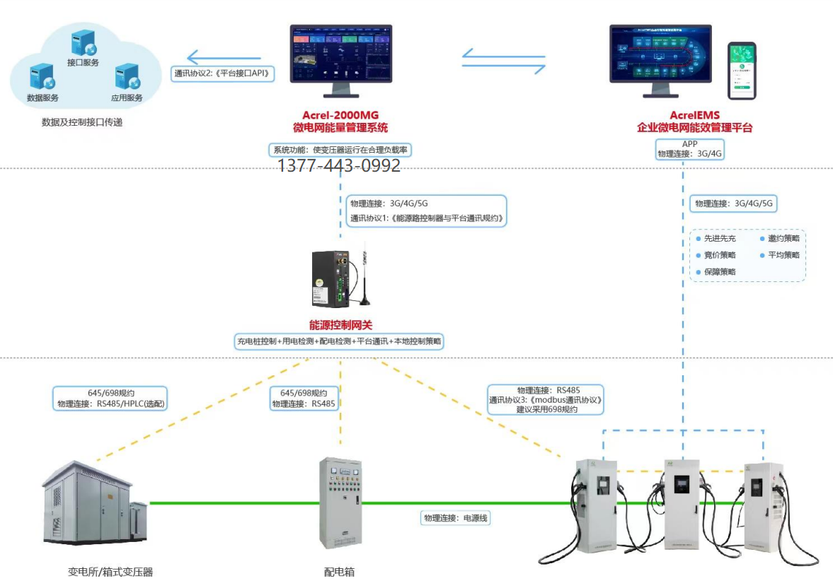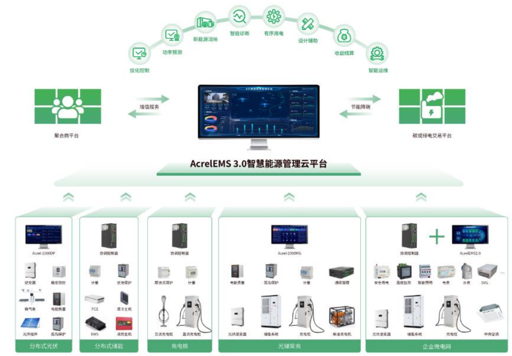 安科瑞基于EMS解决方案从设备运维的角度解决本地充电的能量管理及运维问题与充电管理平台打通数据为企业微电网提供源、网、荷、储、充一体化解决方案。